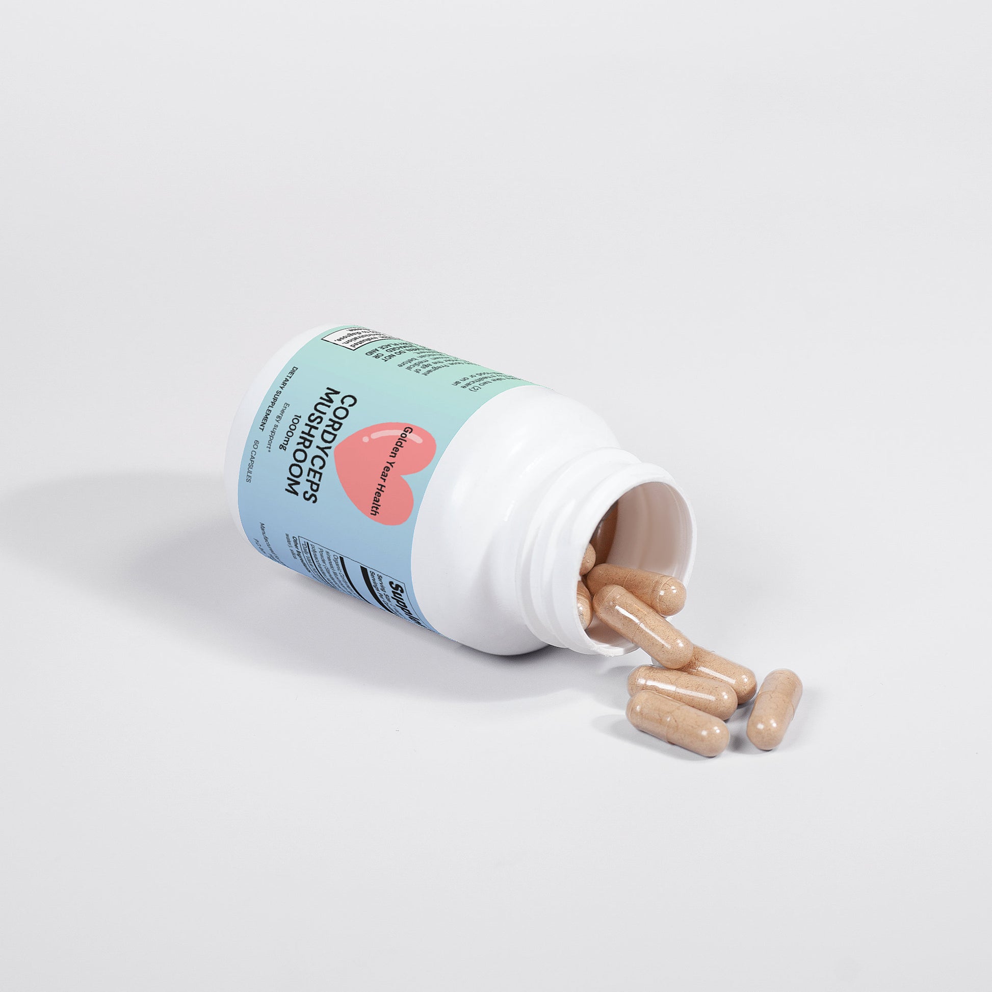 Ingredients: Organic Cordyceps (Cordyceps Sinensis), Mushroom Mycelium Powder (Standardized to 40% polysaccharides [400mg]), Organic capsule (pullulan, water), organic rice hull.